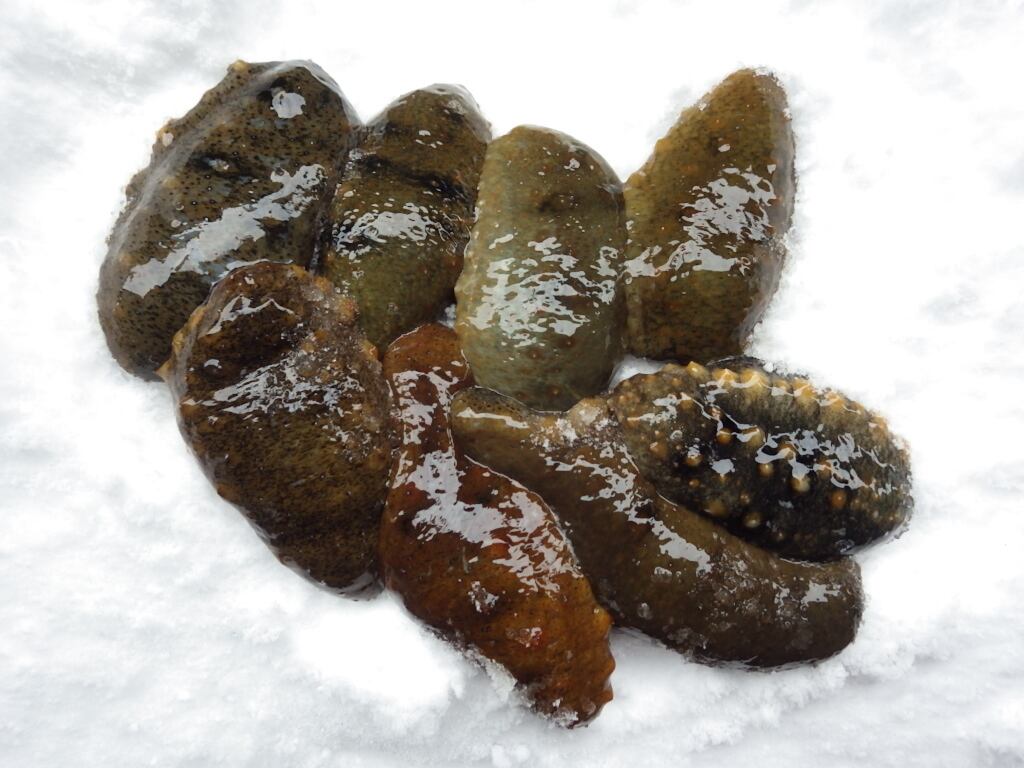 ※今季もナマコ漁が始まりました!昨年同様、今年も温暖化・高水温の影響で天候・海況が著しく悪い日が多く水揚量がかなり少ない状況でございます。価格も日々変動しますが、何卒ご了承下さい。